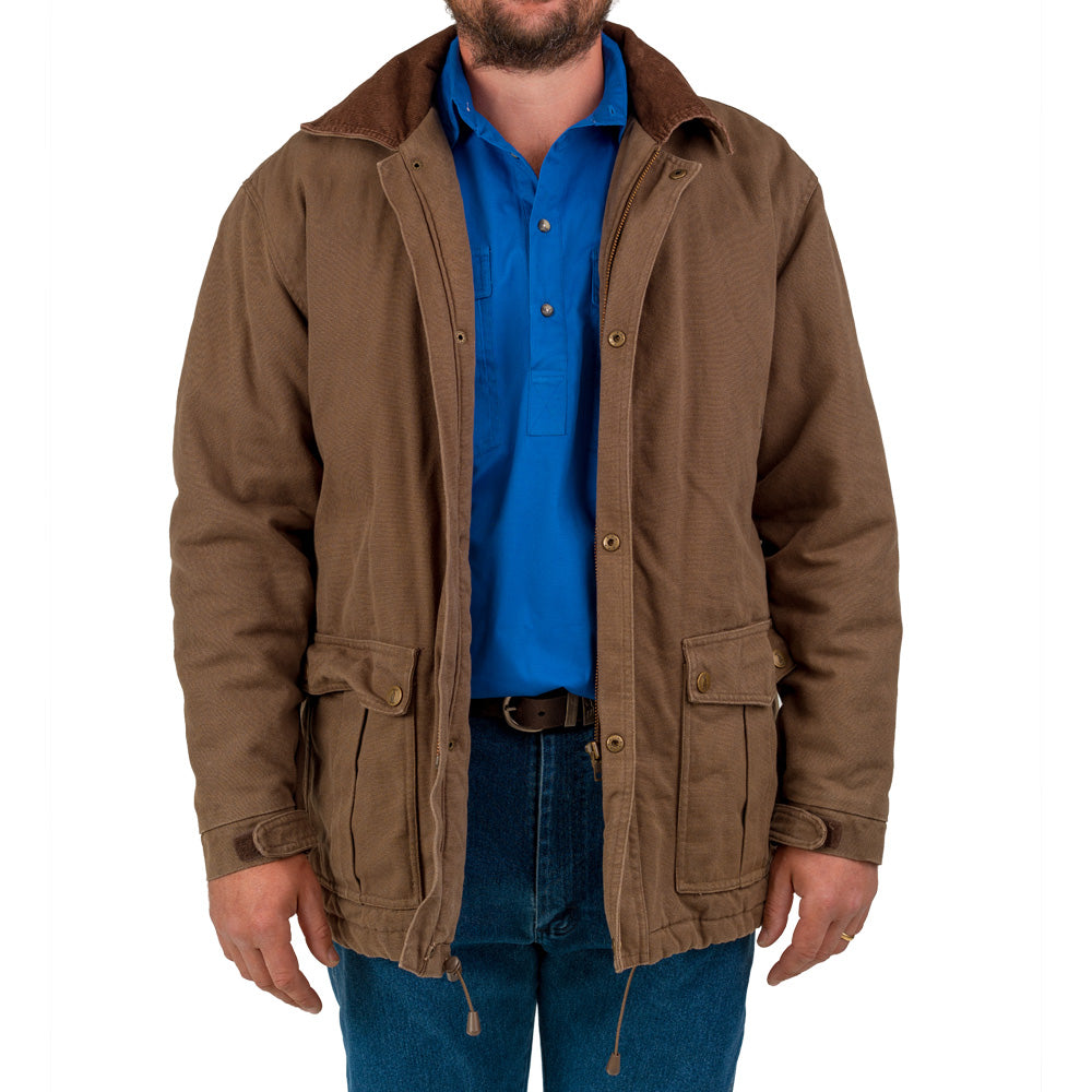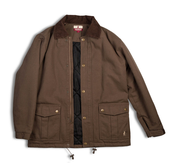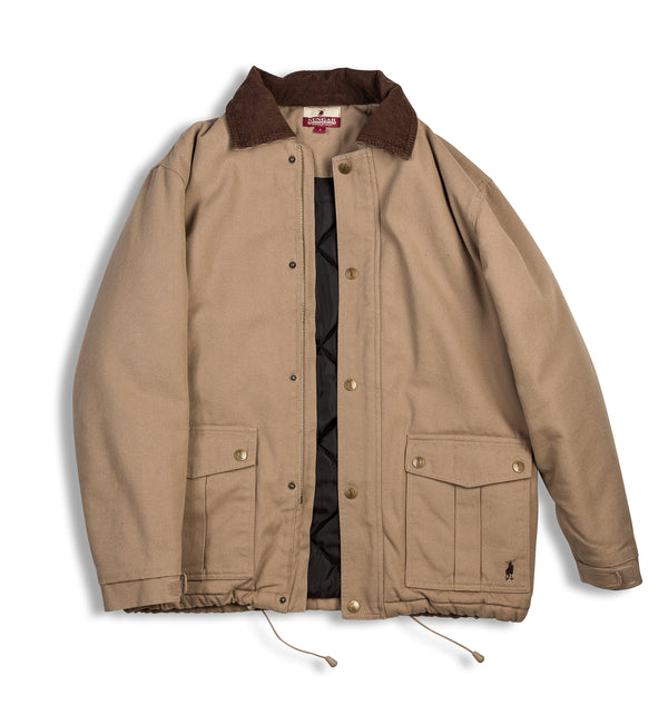 The Bogong Jacket pairs rugged canvas with a corduroy collar, deep front pockets, and a drawstring hem. Built for durability and everyday comfort, it’s a timeless layer for work or weekend wear. Available in Chocolate or Bone.