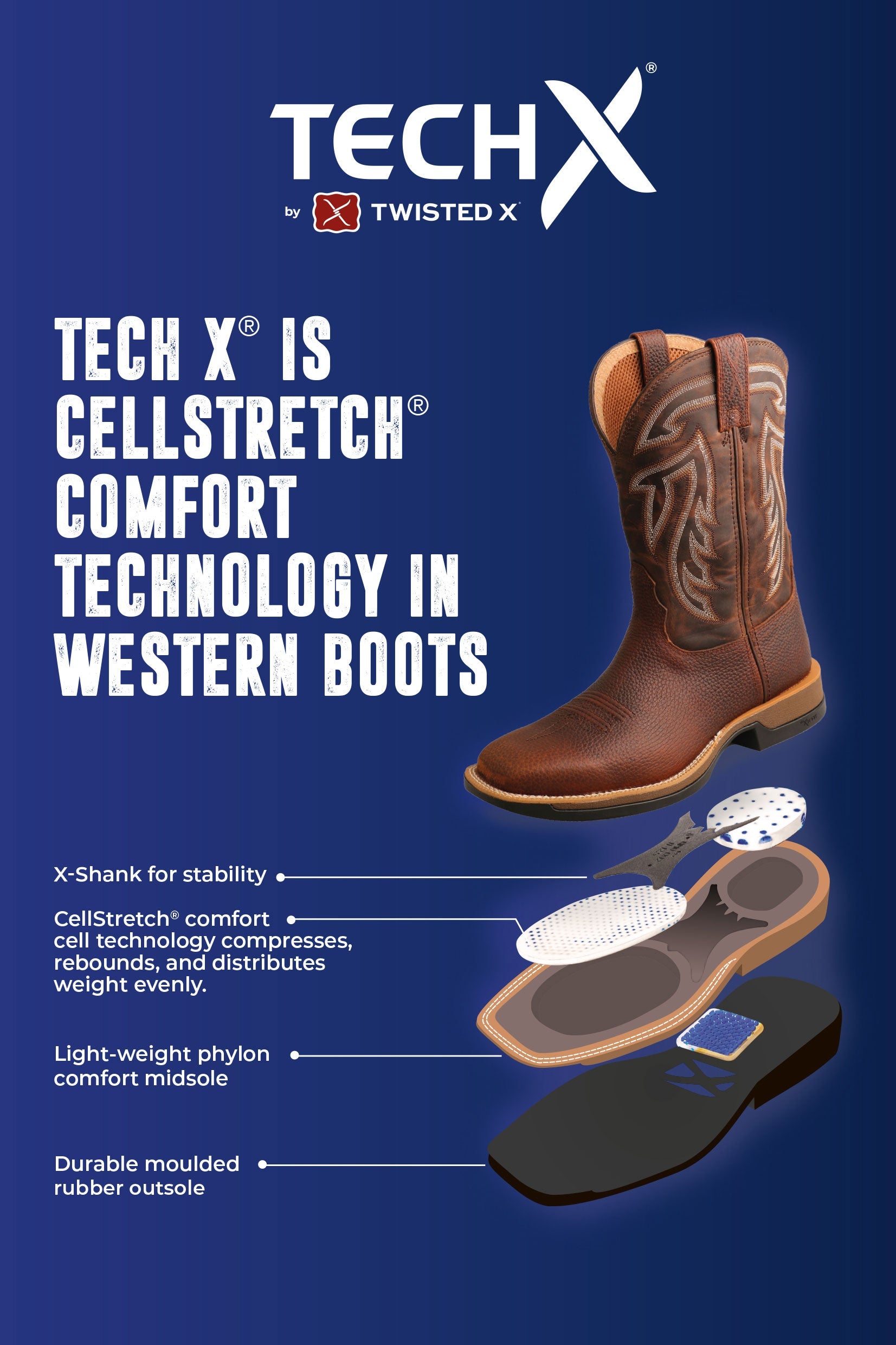 - Full grain leather vamp and 11”shaft - Tech X® lightweight phylon comfort midsole with durable moulded rubber outsole - Air-Mesh lined shaft for improved breathability - Taped interior seams for added comfort - Double-stitched pull tabs - Removable, moisture-wicking, antibacterial and machine washable moulded footbed